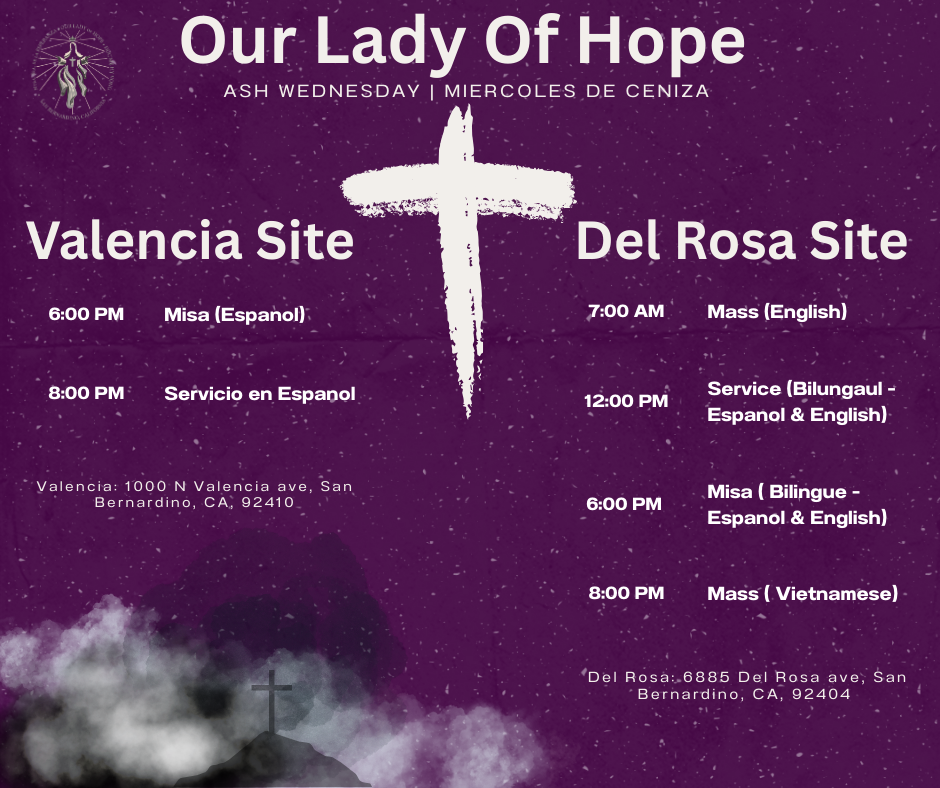 Ash Wednesday schedule | Horario de Miercoles de CenizaPublished by Monserratee Angeles on February 17, 2026February 17, 2026 Categories: EventsParish News Tags: Ash_Wed